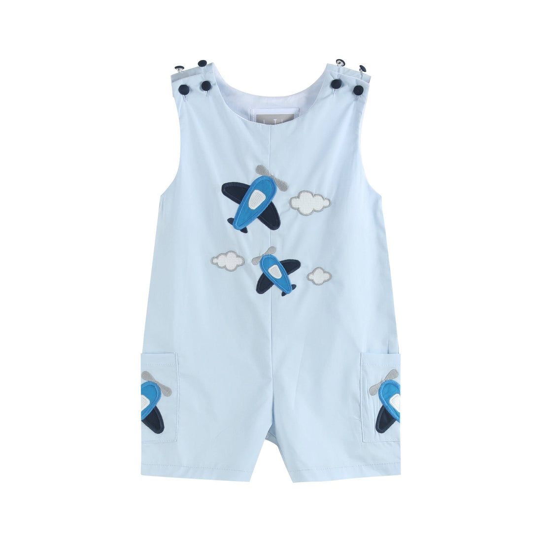 Fly into style with our Blue Airplane Pockets Shortalls. With charming appliqué airplanes and adorable...