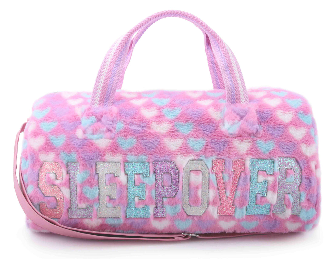 'Sleepover' Heart Print Plush Large Duffle Bag
