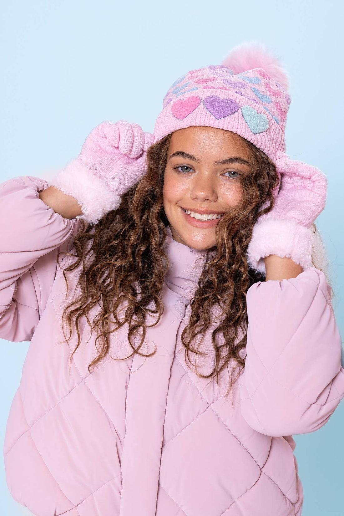 Heart Printed Chenille Hat & Glove Set