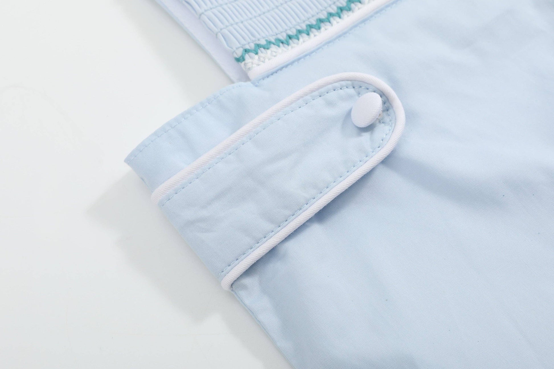 Perfect for Easter or church, these Blue Crosses Smocked JonJon feature delicate smocking with embroidered blue crosses on the front. Crafted in a pretty blue, the outfit not only exudes sweetness but also offers practicality with snaps at the crotch for easy diaper changes and adjustable sizing buttons at the shoulder. Elevate your baby boy's style for special occasions with this timeless and adorable ensemble.
