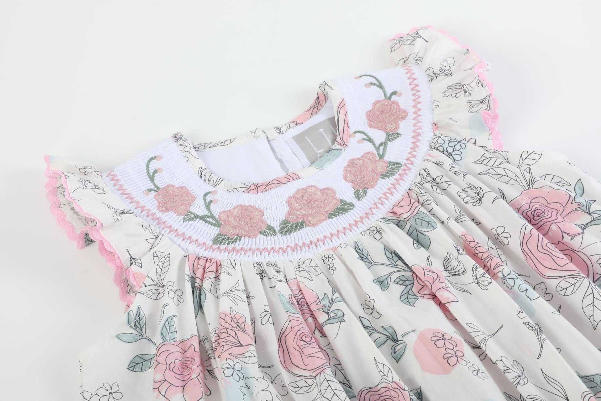 White and Pink Floral Smocked Bishop Dress