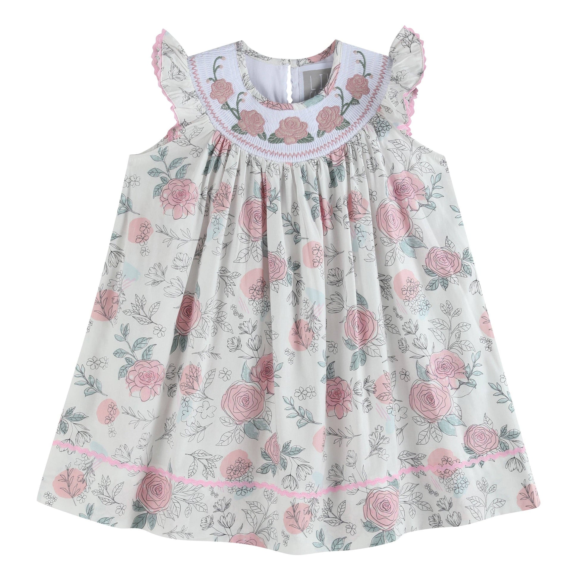 This White & Pink Floral Smocked Bishop Dress is the perfect pick to get your little one ready for springtime! Made in a beautiful floral print, and detailed with embroidered flowers on a smocked neckline. This beautiful dress is stylish enough for special occasions, but also comfortable for everyday wear.